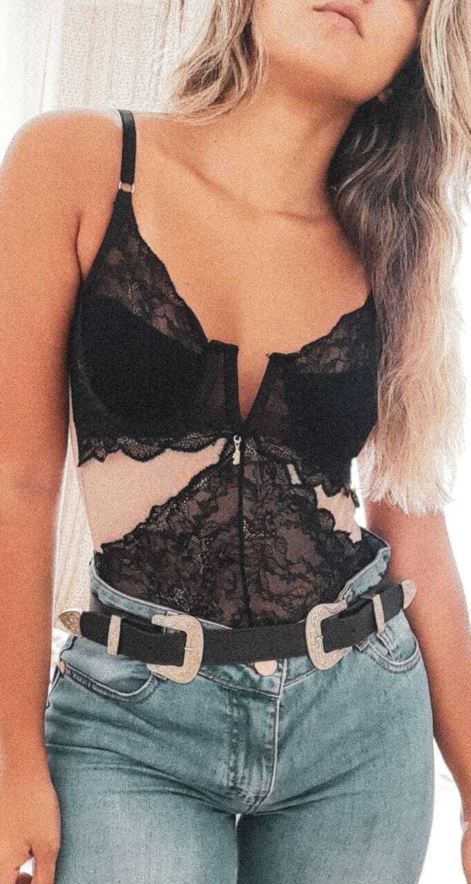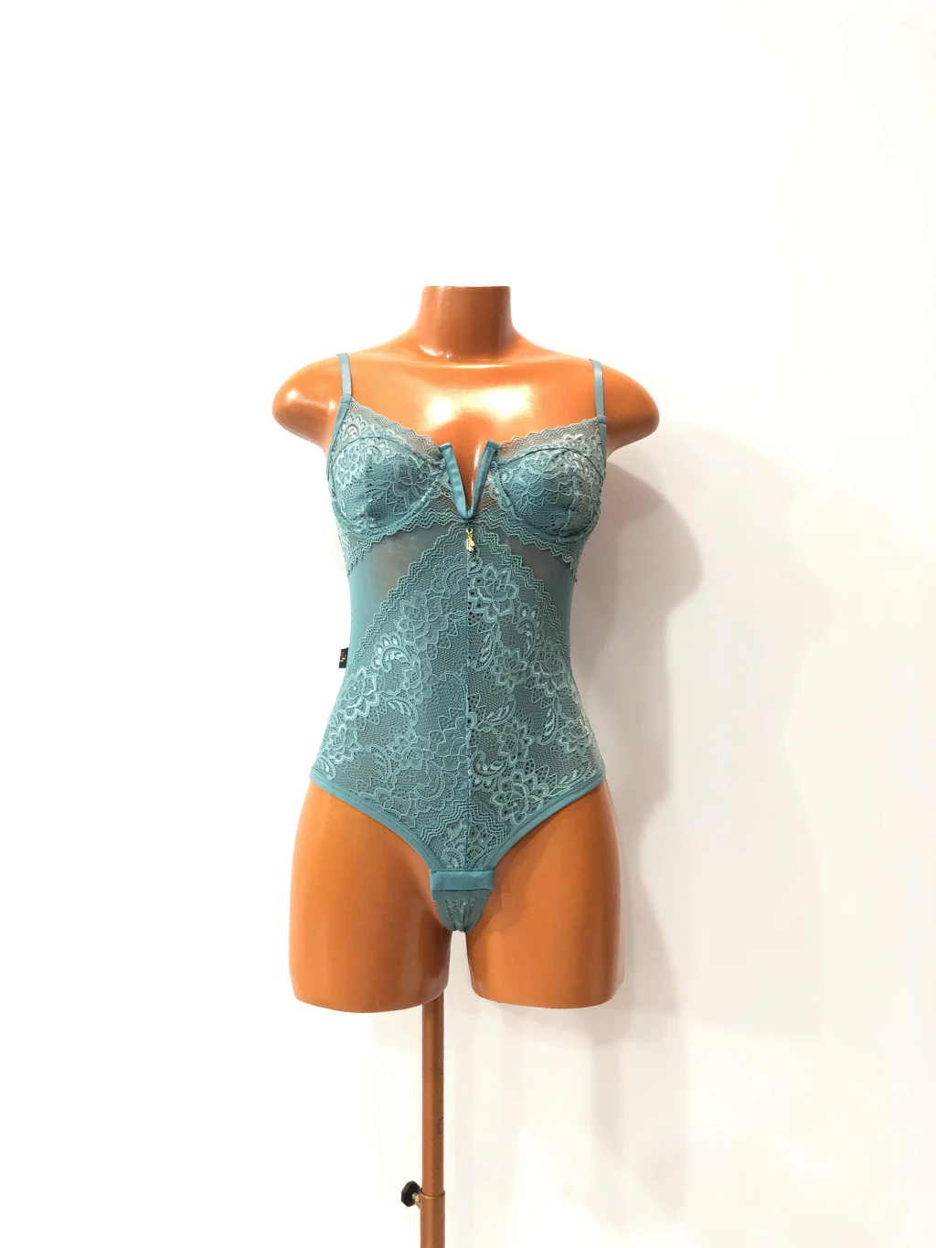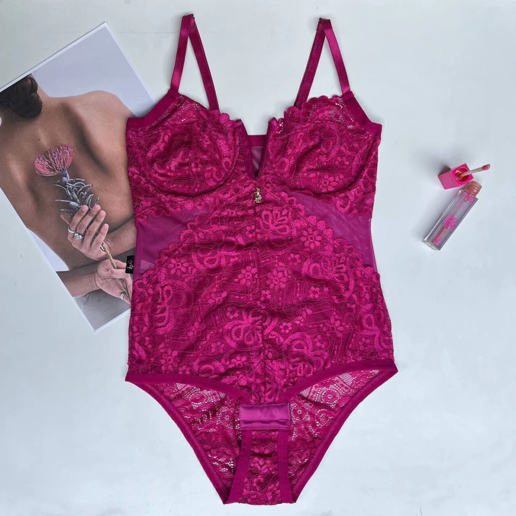 O Body Jade é o queridinho da nossa coleção, e não é difícil entender o porquê. Confeccionado em renda com laterais em tule, este body é a definição da elegância e do estilo. Com um decote com aro em V na parte dos seios, ele proporciona um visual único e envolvente.